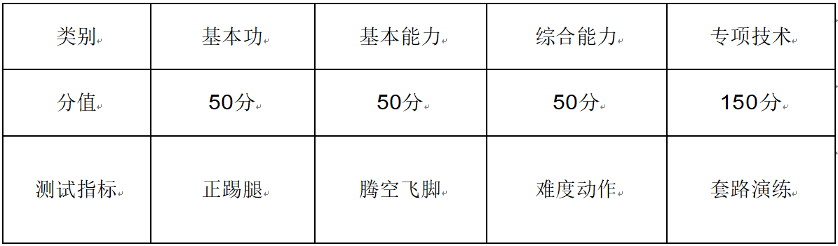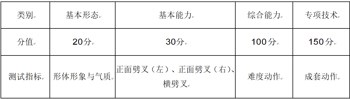 (4)健美操(含啦啦操)项目测试指标与所占分值